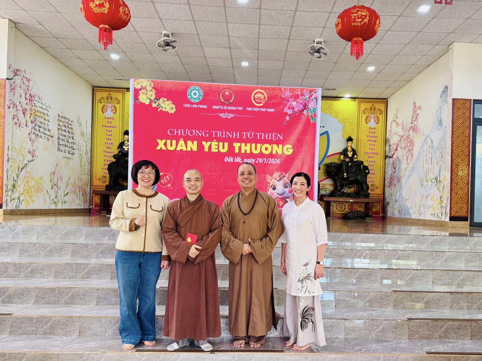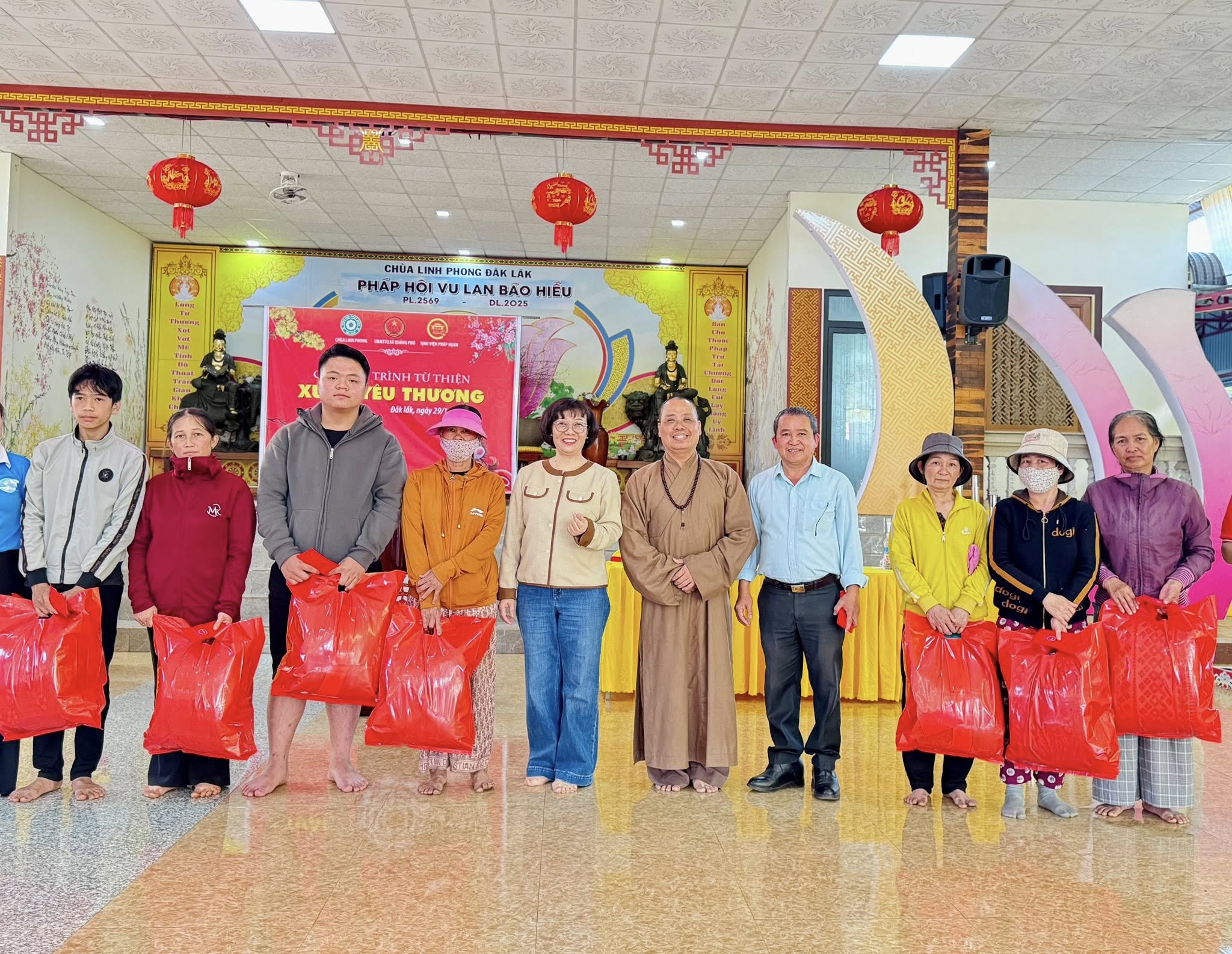 Trong không khí se lạnh của những ngày cuối năm Ất Tỵ, chiều ngày 29/1/2026, Tịnh viện Pháp Hạnh phối hợp cùng Chùa Linh Phong (Đắk Lắk) đã tổ chức chương trình Xuân Yêu Thương, trao tặng 100 phần quà Tết đến bà con có hoàn cảnh khó khăn tại xã Quảng Phú, tỉnh Đắk Lắk.