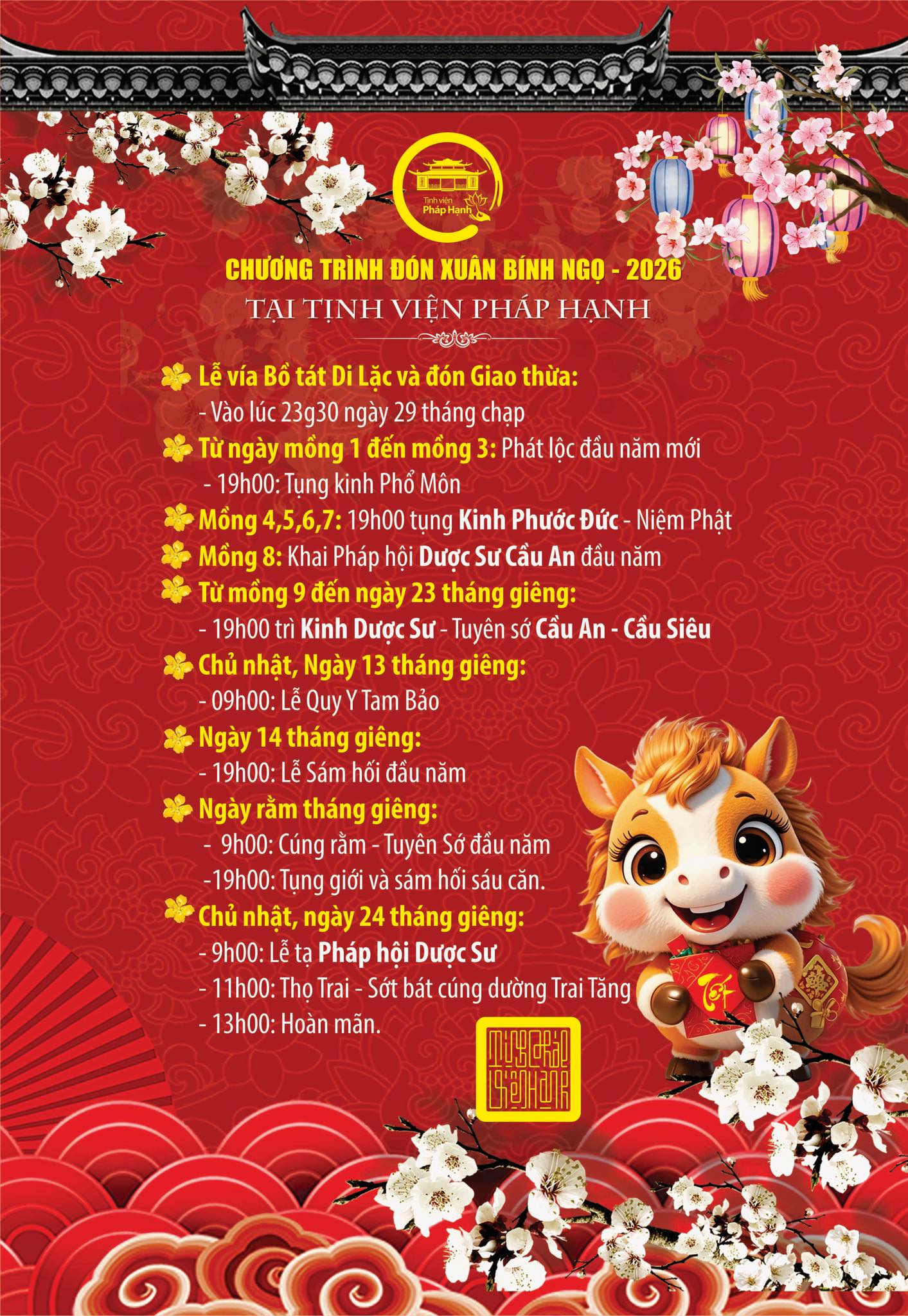 Chương Trình ĐÓN XUÂN BÍNH NGỌ - 2026 TẠI TỊNH VIỆN PHÁP HẠNH