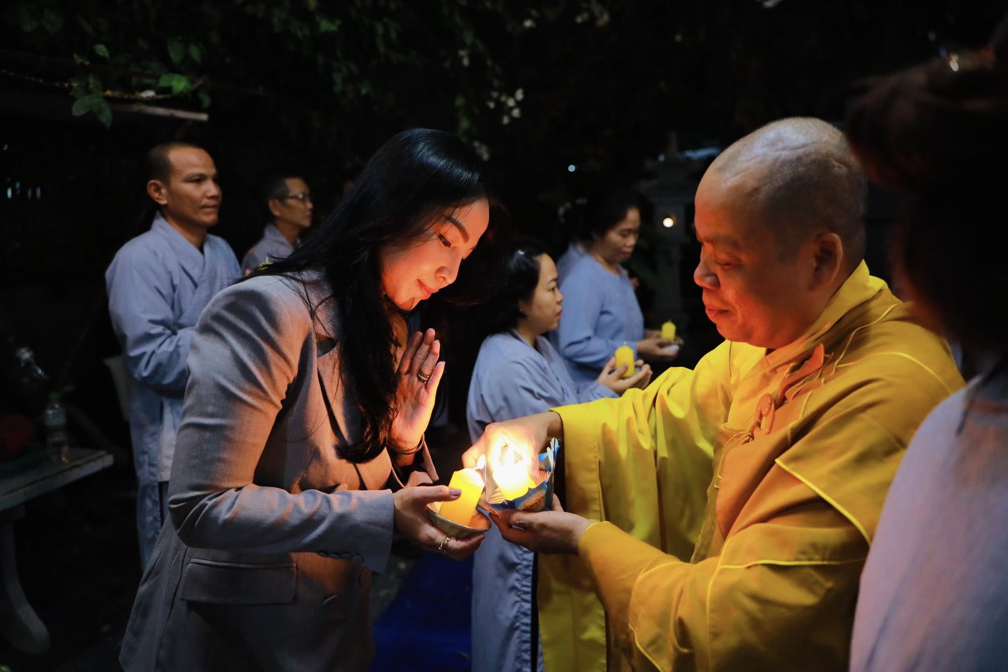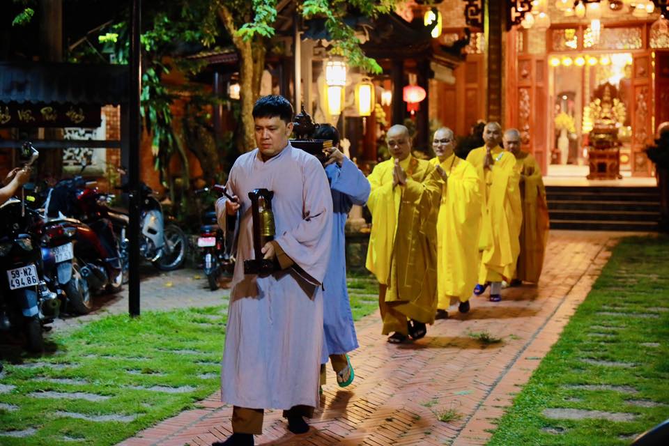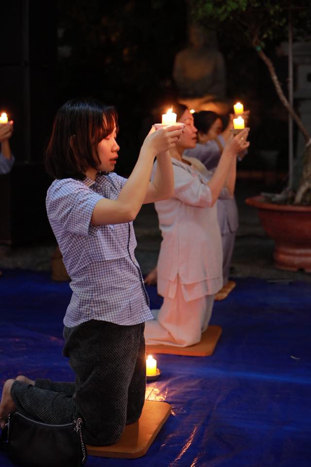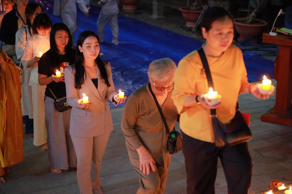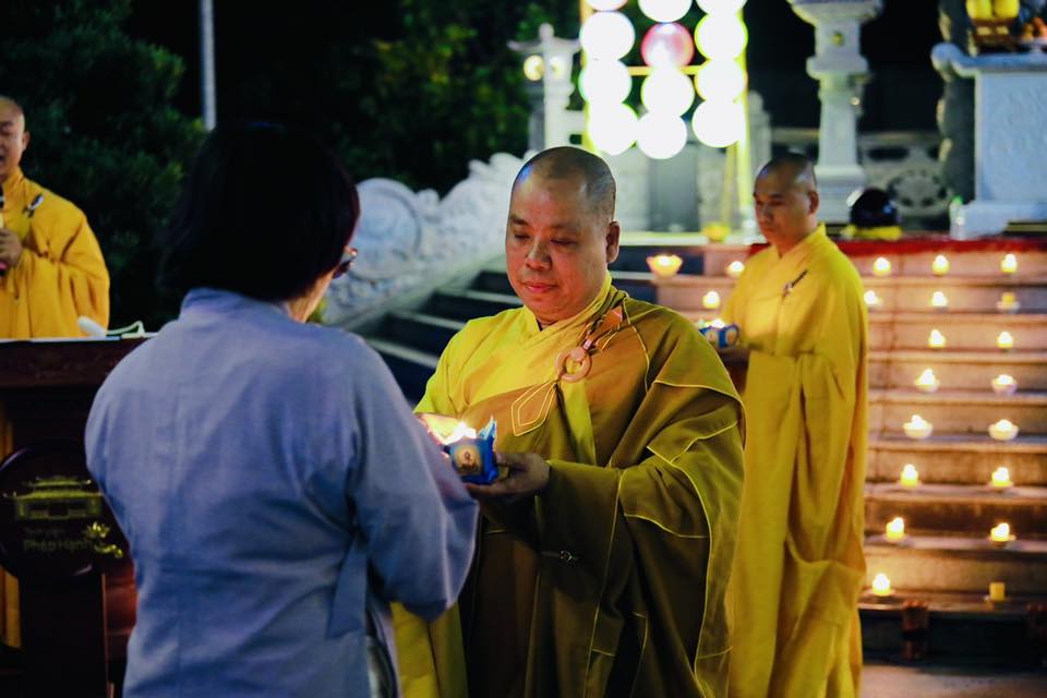 Ấn tượng tại đêm lễ là lễ truyền đăng, ngọn đèn được thắp sáng tại bàn Phật được Thầy trụ trì truyền đến tất cả quý Phật tử có mặt tại đêm lễ.