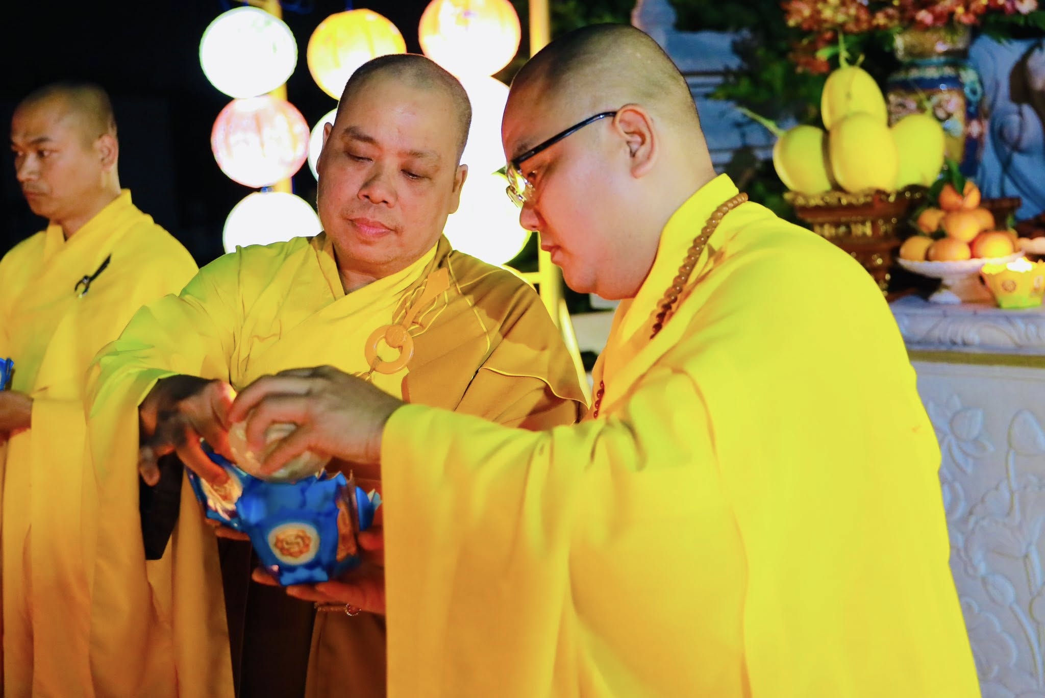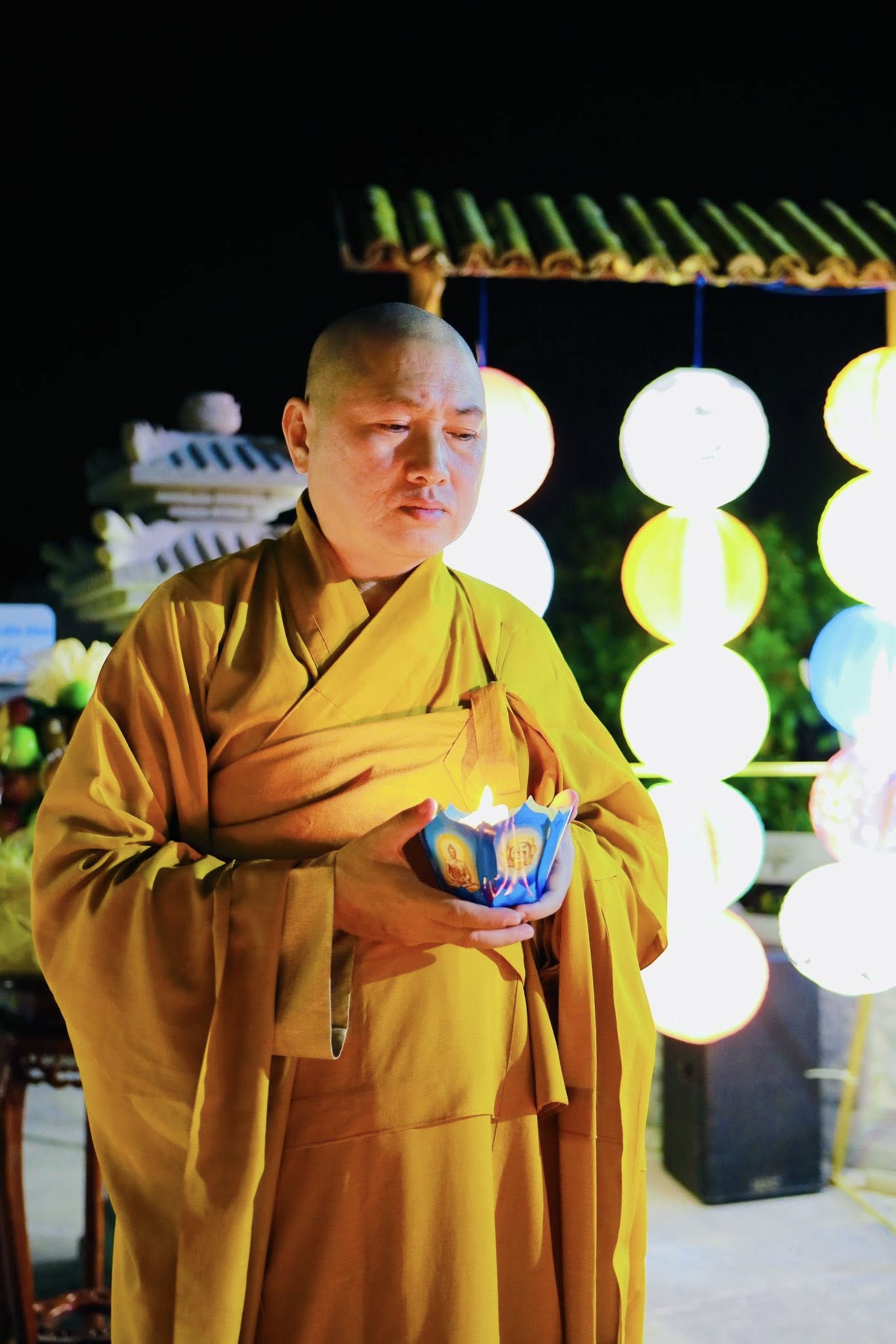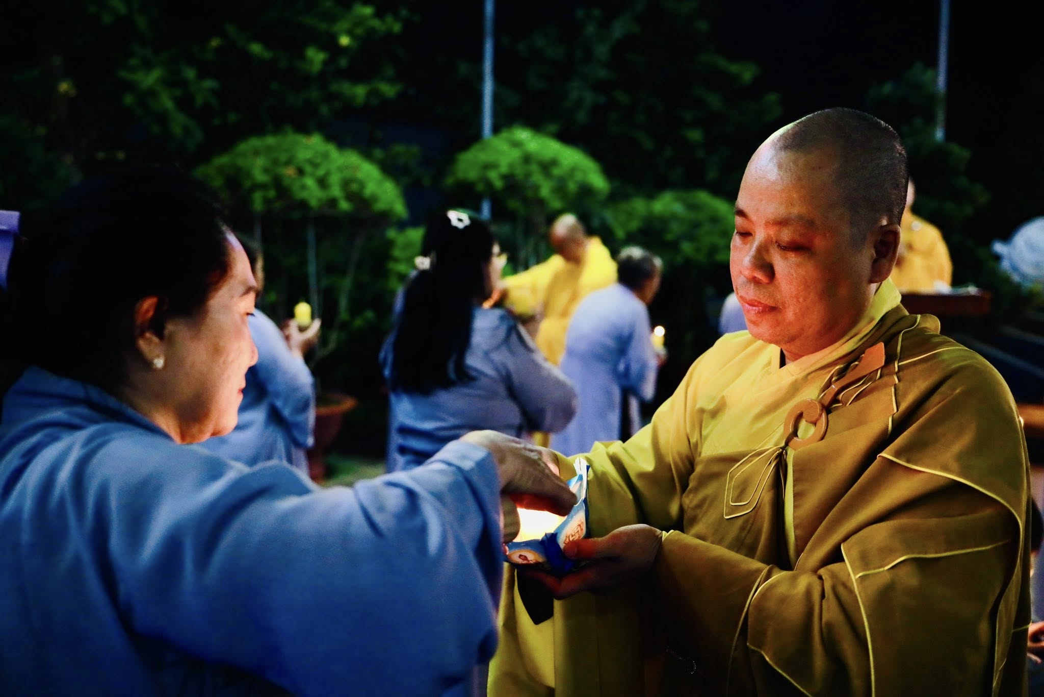 Ấn tượng tại đêm lễ là lễ truyền đăng, ngọn đèn được thắp sáng tại bàn Phật được Thầy trụ trì truyền đến tất cả quý Phật tử có mặt tại đêm lễ.